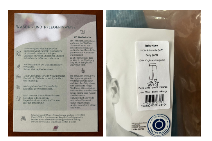 Eine einzige kleine Kritik gab es beim Thema Verpackung bzw. Präsentation. Unseren Testern und auch der Redaktion ist aufgefallen, dass die Beschriftung bzw. Kennzeichnung der Produkte in sehr kleiner Schrift verfasst ist und man trotz Lesebrille auch zur Lupe greifen muss. Positiv angemerkt wurde, dass die Wasch- und Pflegehinweise separat noch einmal separat als Karte beiliegen und gut zu lesen sind.
