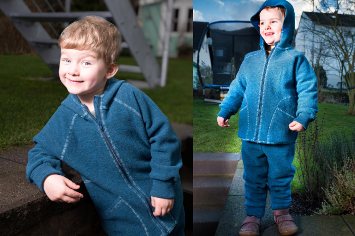 Getestet wurden die Kleidungsstücke von zwei Enkelkindern und deren Großeltern: je eine Walkjacke mit Kapuze und Reißverschluss sowie die dazu passende Hose.