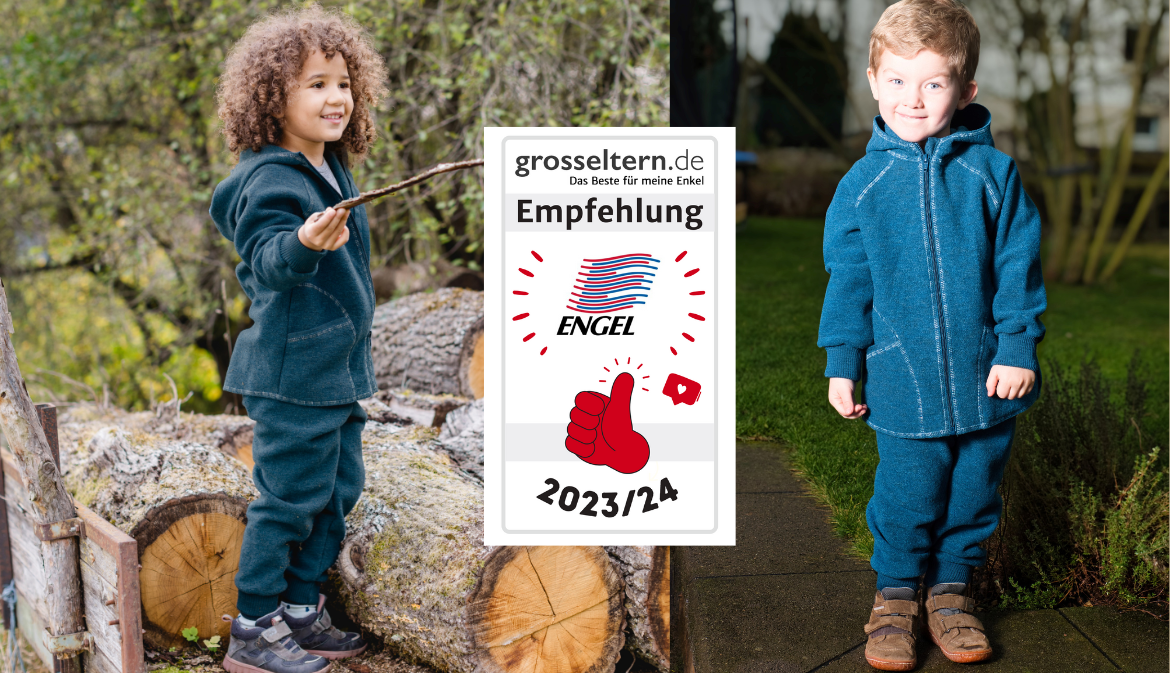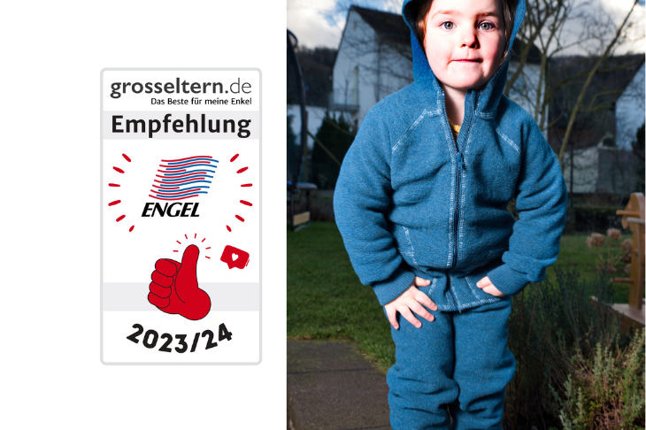 Hier einige weitere Reaktionen unserer Tester: ‚Unsere dreijährige Sophia war sofort verliebt in die Farbe‘, ‚Leon hat heftig mit Opa im Garten getollt, der Anzug von ENGEL war schön warm, die Grasflecken hat er gut weggesteckt und auch nach mehrmaligem Waschen hält er seine Form.‘ Oma Monika: ‚Am meisten überzeugt hat mich die Qualität, vor allem der Anspruch von ENGEL an die Naturfasern. Der Anzug aus Schurwolle kratzt nicht, ist total weich und obwohl Leon geschwitzt hat, war er nicht nass auf der Haut. Auf der Homepage von ENGEL habe ich nachgelesen, dass die Wolle aus kontrolliert biologischer Tierhaltung (kbT) stammt. Die Merinoschafe werden artgerecht gehalten, damit sie gesund und stressfrei leben können. Der Einsatz von Schädlingsbekämpfungsmitteln ist sowohl auf den Weiden als auch am Tier verboten, das finde ich wirklich vorbildlich.‘
